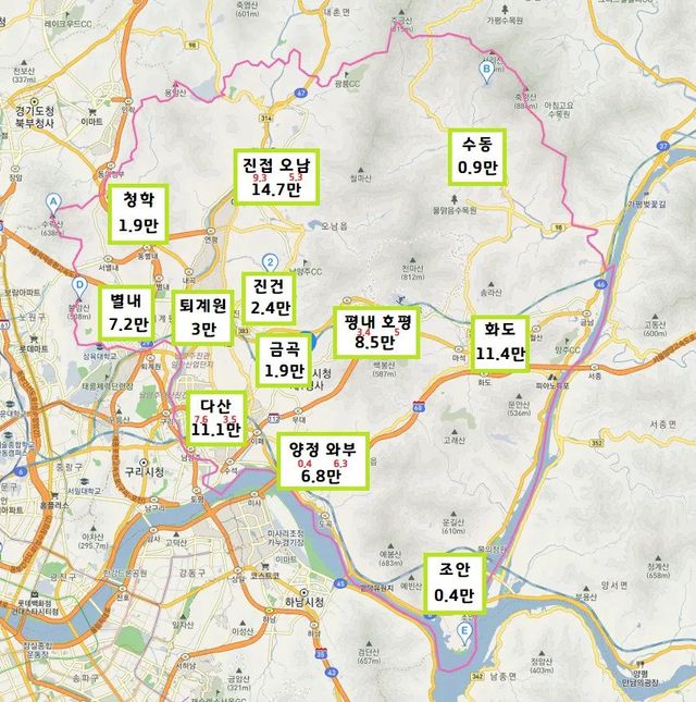 남양주시 인구는 대략 75만으로 대략 전주나 천안보다 많고 부천보다 조금 적은 수준임에도 인프라가 열악함