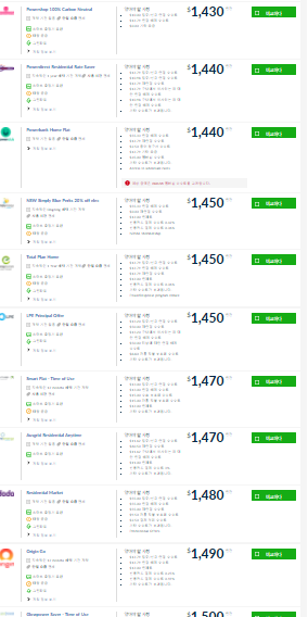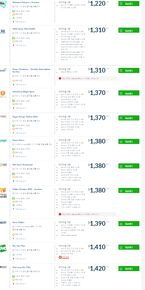 스샷은 현제 제가 선택 할 수 있는 전기 회사 업체입니다.