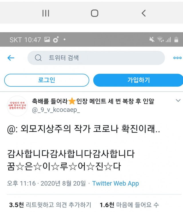 코로나 확진 됐는데 트위터에서 이지랄 났지