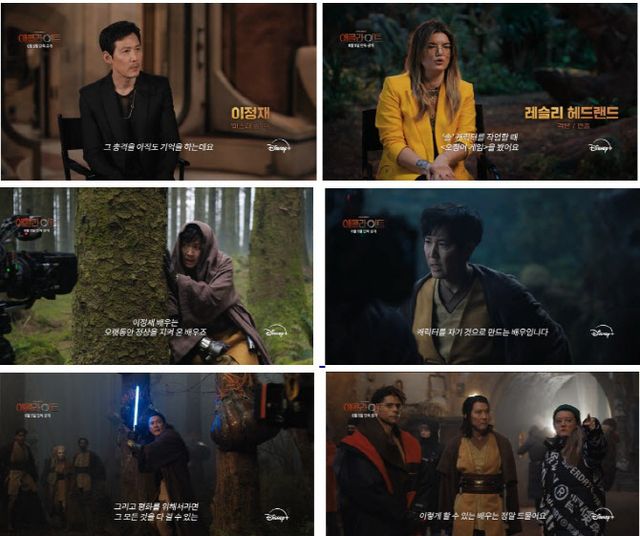 공개된 영상 속에는 ‘애콜라이트’ 곳곳에서 독보적 존재감을 보인 이정재의 모습과 함께 그의 인터뷰가 담겨 눈길을 사로잡는다. 이정재는 “어렸을 때 스타워즈를 극장에서 처음 봤을 때의 충격을 아직도 기억한다. 그런 내가 스타워즈를 촬영했다는 것에 대해서 아직도 믿어지지가 않는다”면서 ‘스타워즈’를 향한 남다른 애정을 드러냈다. 작품의 연출 및 각본을 맡은 레슬리 헤드랜드 감독과 에피소드 3, 7편의 연출을 맡은 코고나다 감독은 이정재를 향한 무한한 신뢰감을 전하며 그와의 작업기를 전했다. 두 감독은 “‘솔’ 캐릭터를 작업할 때 ‘오징어 게임’을 봤다. 이정재 배우를 보자 마자 바로 ‘솔’이다 싶었다”면서 “정말 다양한 감정을 보여주는 배우”, “캐릭터를 자기 것으로 만드는 배우” 라며 이번 캐릭터에 이정재가 완벽한 적임자였음을 다시금 강조했다. 이어 “이정재 배우는 무시무시했다가도 깊은 슬픔까지 자유롭게 연기한다. 이렇게 할 수 있는 배우는 정말 드물다”면서 고난이도 액션부터 섬세한 감정 연기까지 캐릭터를 입체적으로 만들어낸 그를 향한 감탄사를 아끼지 않았다.