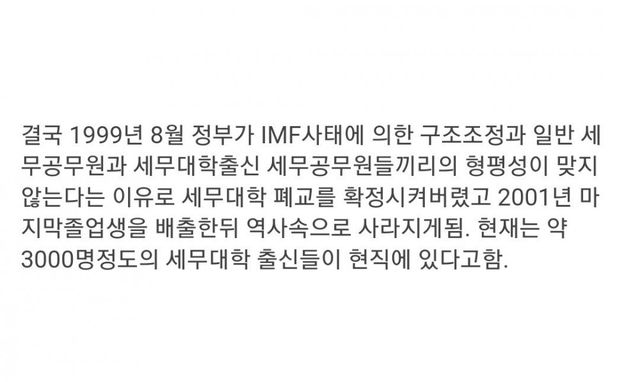 당시 세무대학 졸업자는 재무부, 국세청, 관세청