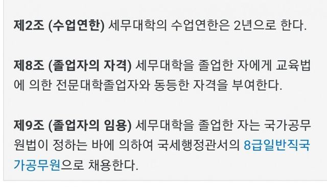 세무대학장은 1급 공무원이 임명 되었고