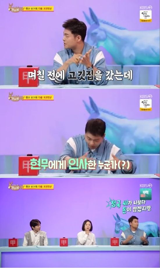 5일 방송된 KBS 2TV '사장님 귀는 당나귀 귀'에서는 전현무가 식당에서 정국을 만난 에피소드를 공개해 눈길을 끌었다.