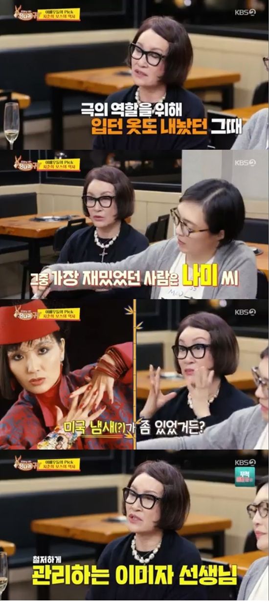 지춘희는 "가장 기분좋게, 재밌게 만들었던 건 나미 씨 의상이었다. 미국 냄새가 좀 있었는데 날 만나면서 바꿔지기 시작했다. 일을 같이 오랫동안 했다. 기억에 남는다"고 했다.