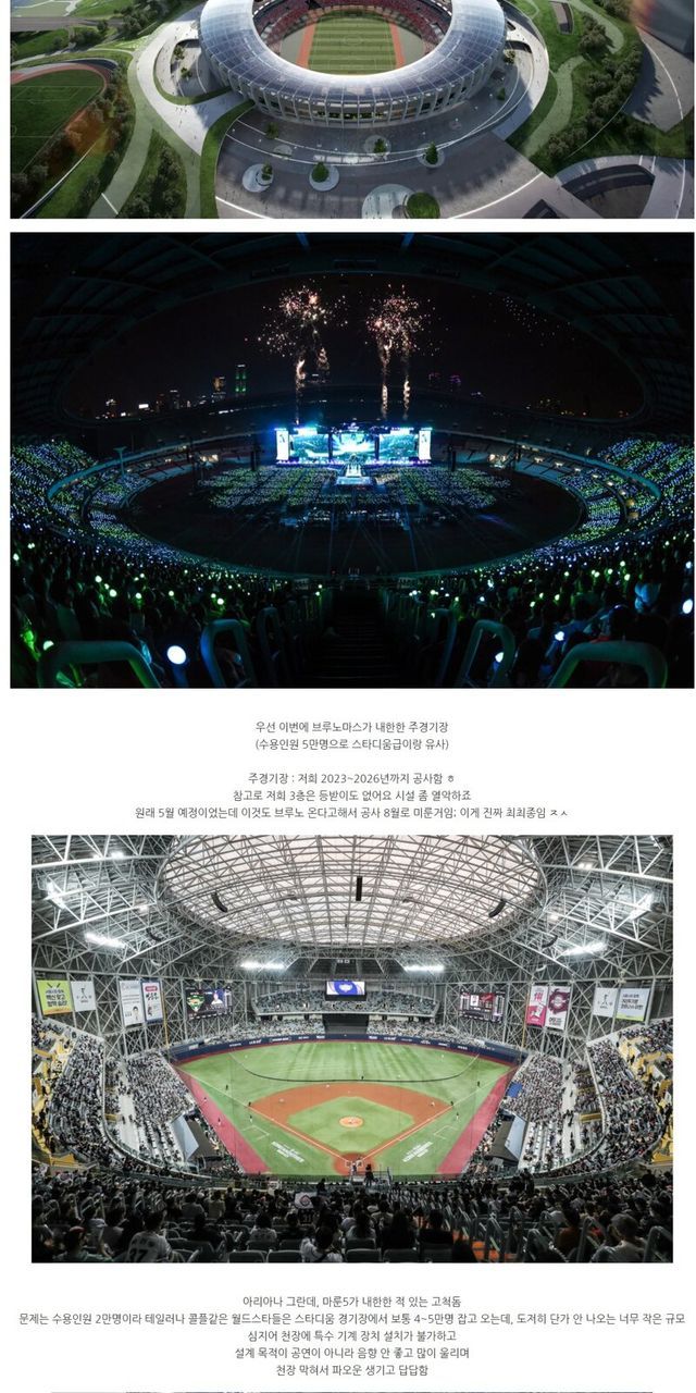 – 올림픽주경기장 (6만석)이 2026년까지 리모델링 공사해서 공연할만한 공연장이 없음.