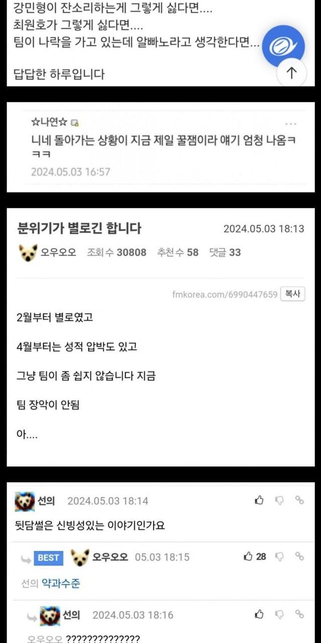 안그래도 분위기 안 좋은데 팬이라는 놈이