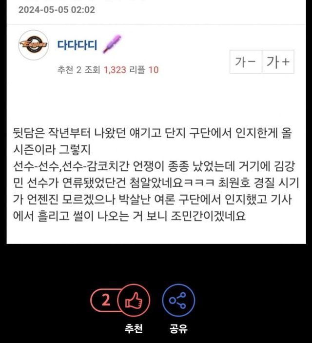 감독이 짤리면 어차피 최원호 사단도 해체됨