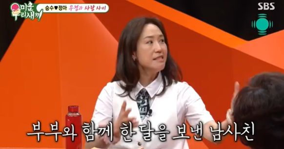 강주은은 "(남사친이) 집에서 같이 아침, 점심, 저녁 먹으며 한 달 동안 같이 지냈다"고 떠올렸다.