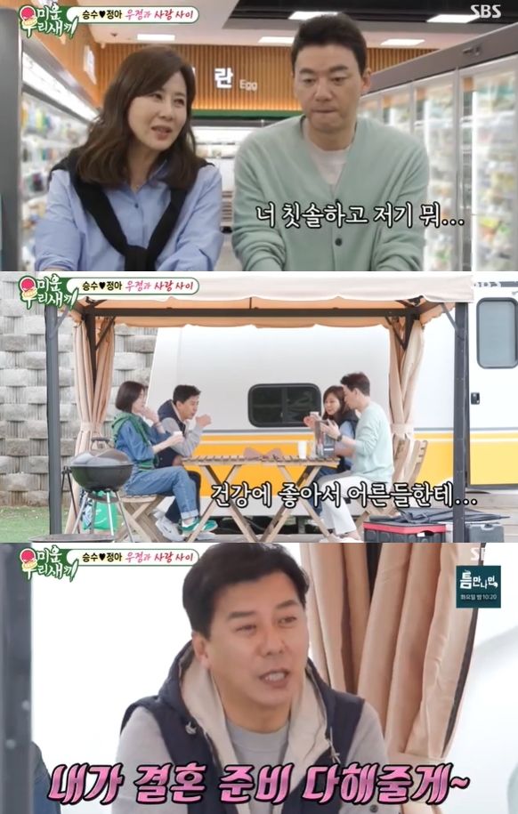 손지창은 "캠핑카가 두 대인데, 한 대는 우리가 쓸 테니까 저 캠핑카를 너희 둘이 써라"라고 말해 김승수를 당황케 했다.