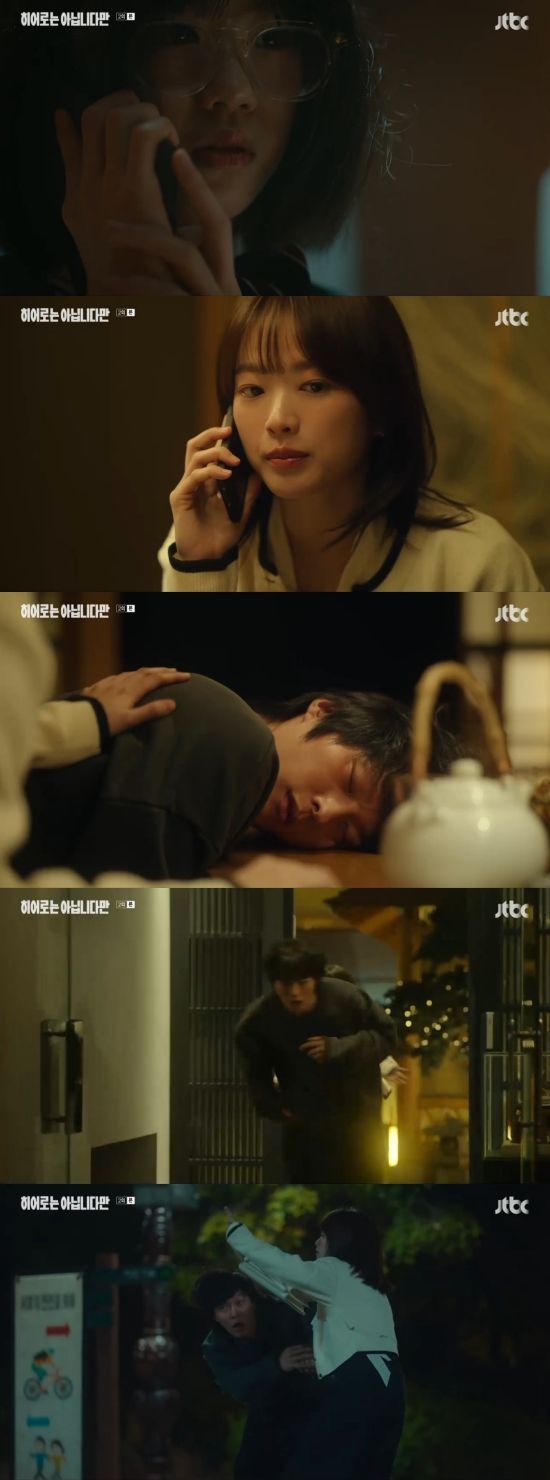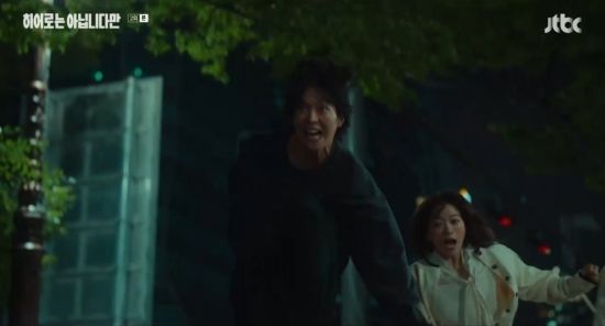 5일 방송된 JTBC 새 토일드라마 '히어로는 아닙니다만' 2회에서는 복귀주(장기용 분)와 도다해(천우희)가 손을 잡고 달리는 모습이 그려졌다.