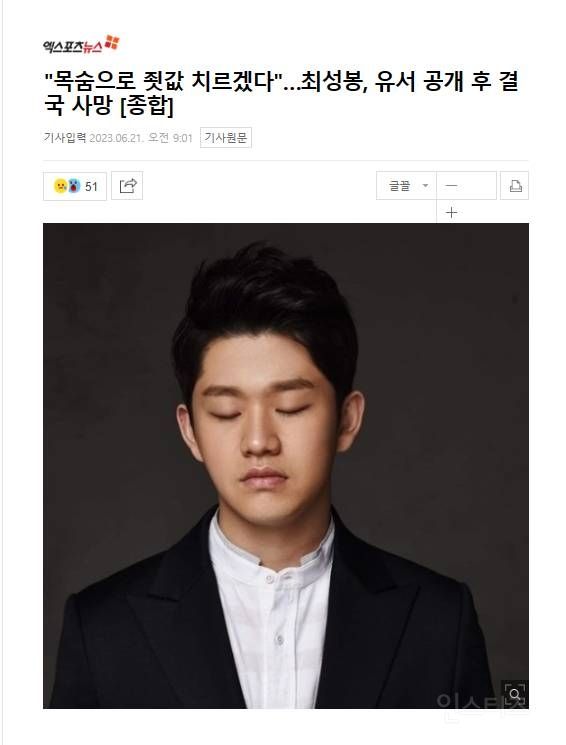 출처 : “목숨으로 죗값 치르겠다”…최성봉, 유서 공개 후 결국 사망 [종합] :: 네이버 TV연예 (naver.com)