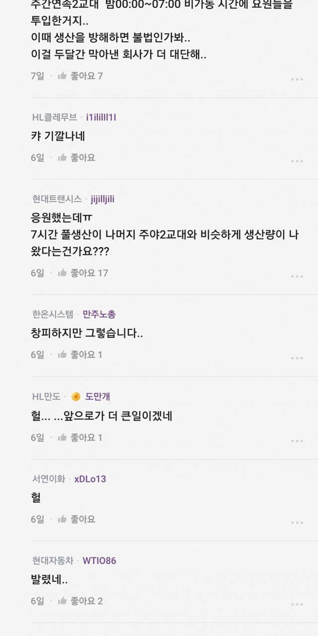 사측 인원이 야간생산만 했는데 평소 주야간 생산량 압도 ㅋㅋ