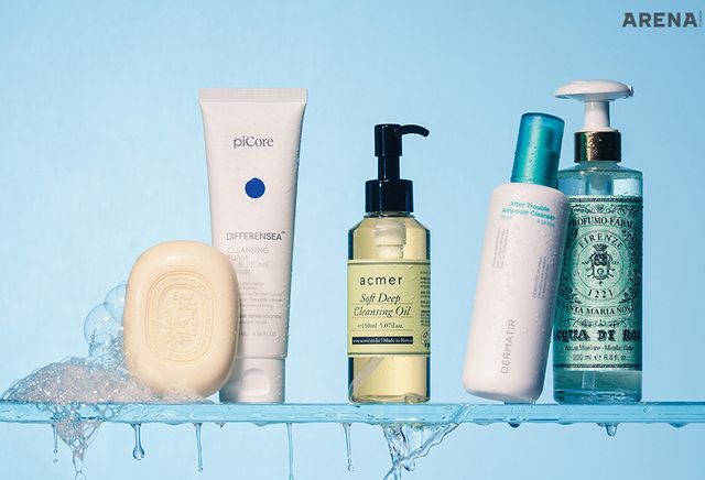 (왼쪽 위부터)아몬드 오일 등 식물성 원료로 고보습 효과를 발휘하는 오 데 썽 센티드 솝 150g 5만5000원 딥티크, 극미세 거품이 모공 속 노폐물을 효과적으로 케어하는 디퍼런씨 클렌징폼 블루바이옴 리페어 120mL 2만5000원 파이코어, 순식물성 오일을 사용해 알레르기를 최소화한 무자극 소프트 딥 클렌징 오일 150mL 2만2000원 아크메르, 뛰어난 트러블 진정 성분인 바운스 알란토인을 함유한 애프터 트러블 앰플 클렌저 130mL 2만5000원 더마티르, 다마스크 장미꽃수가 민감한 피부를 진정시켜주는 아쿠아 디 로즈 미쉘라 워터 200mL 4만8000원 산티마리아노벨라,
