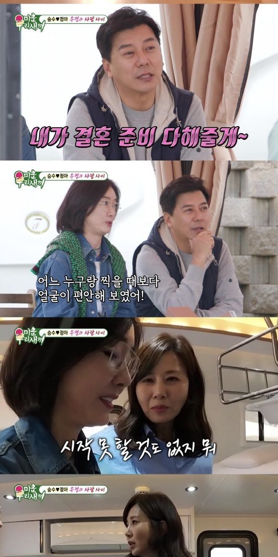 5일 방송한 SBS ‘미운 우리 새끼’에서 20년 지기 절친 김승수와 양정아는 오연수, 손지창 부부와 1박 2일 여행을 떠났다.