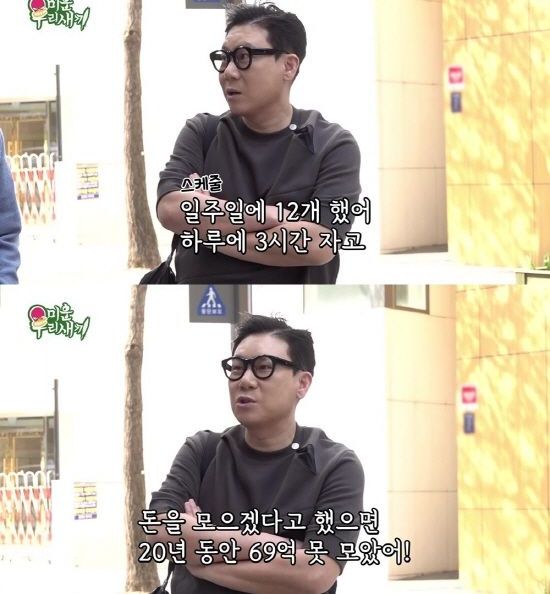 이에 이상민은 “나 진짜 열심히 살았다. 방송 많이 할 때는 일주일에 12개 했다. 하루에 3시간 잤다. 짧은 세월이 아니다. 빚이었으니까 그렇게 열심히 갚았다. 돈을 모으겠다고 했으면 20년 동안 69억 못 모았다”고 밝혔다.