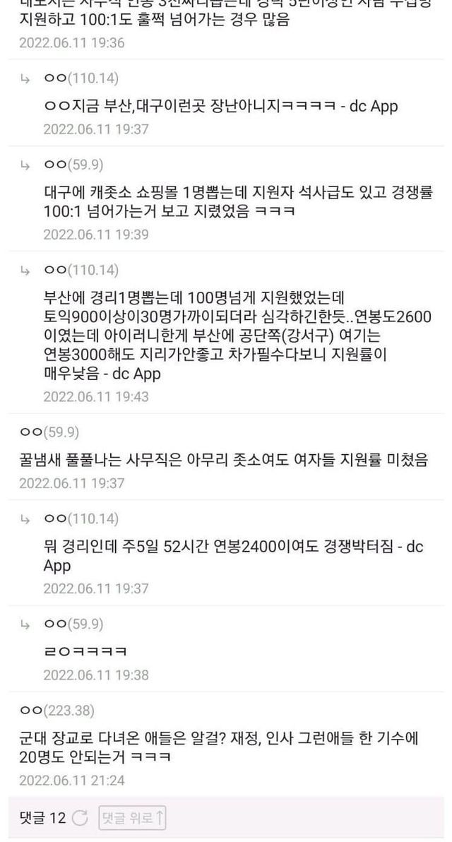 뽑는 인원보다 지원한 사람이 배는 많음