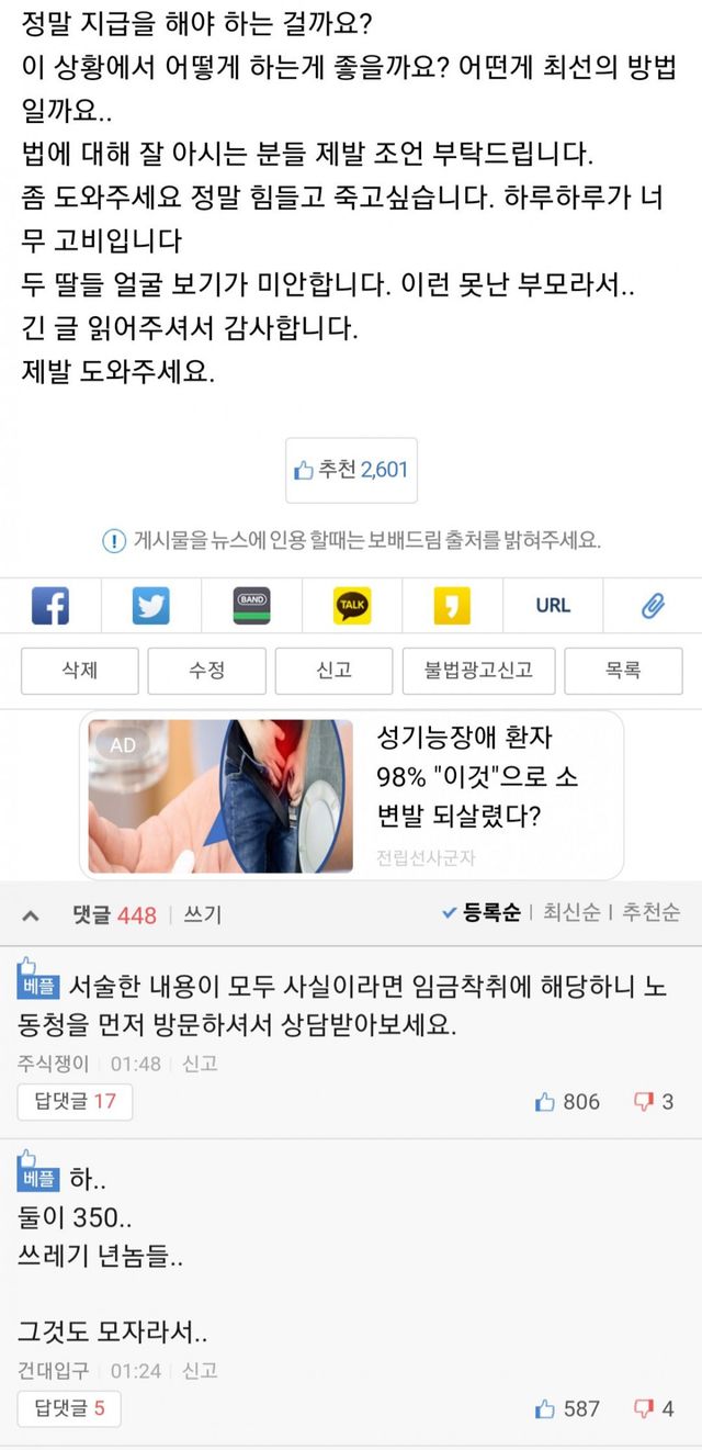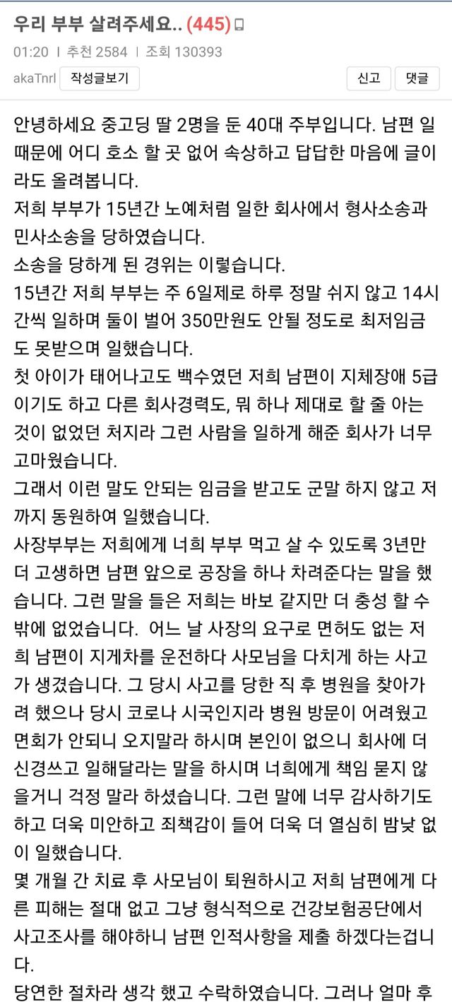 장애 약간있는 부부를 최저 시급으로 10년넘게