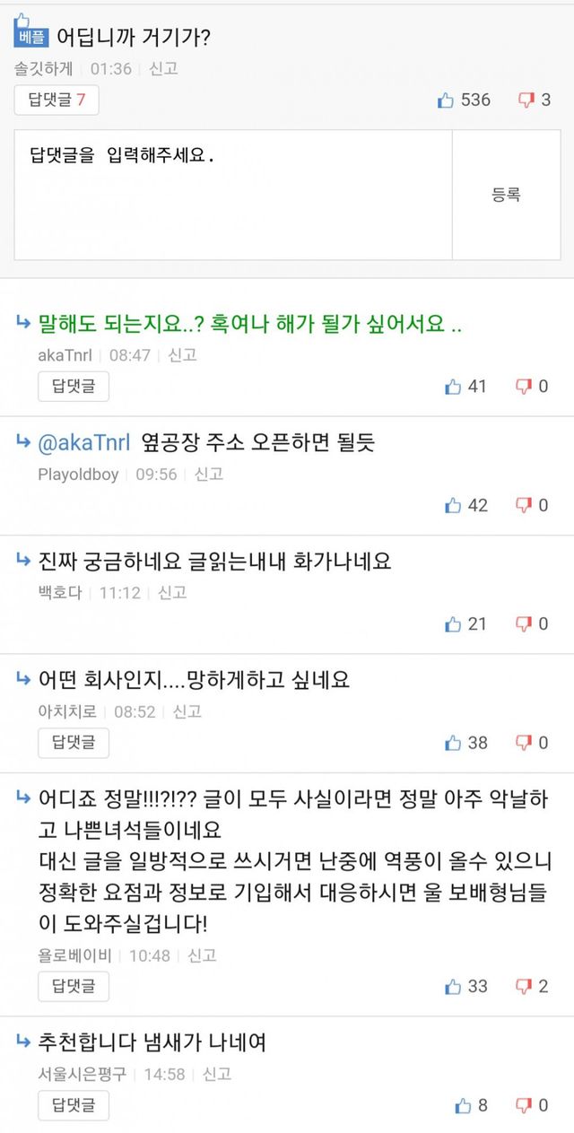 보배 빡쳐서 회사 옆공장 주소 알려달라고함ㅋㅋ