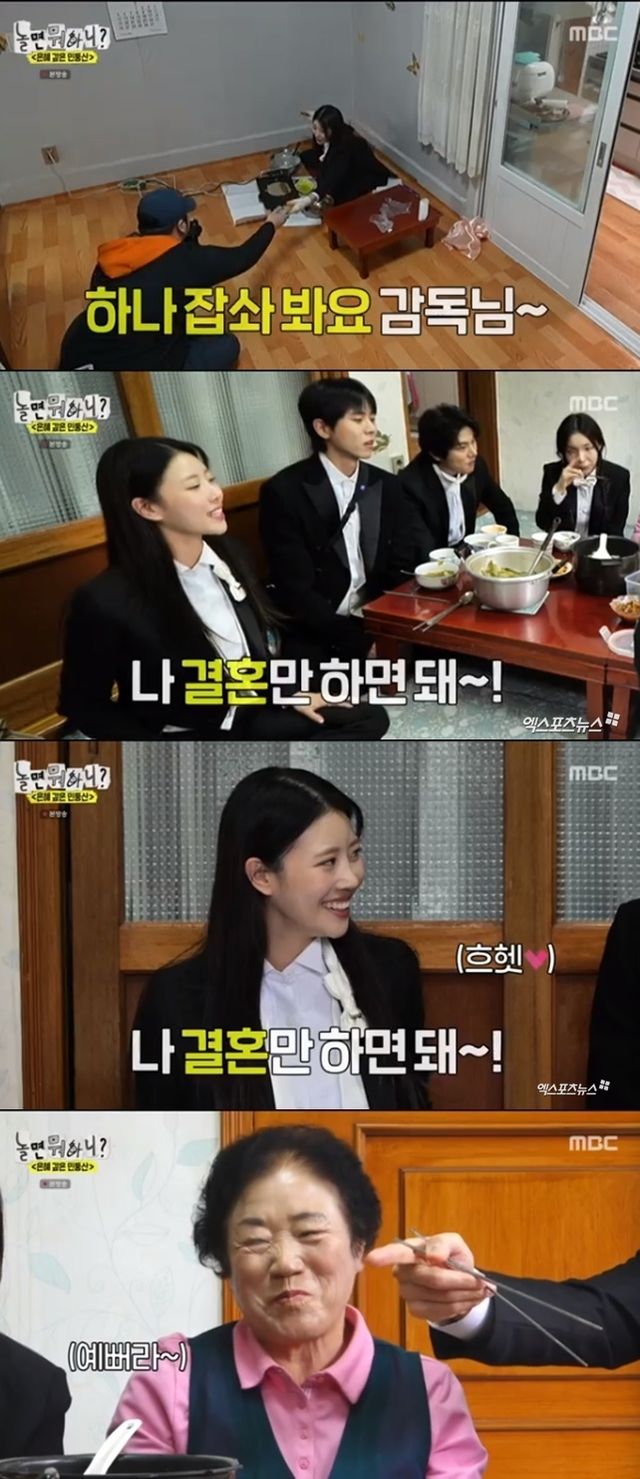유재석은 "너 잘했다"라며 칭찬했다. 여사님도 "처음 해도 잘하네"라며 감탄했다. 그러자 이미주는 "나 시집만 가면 된다"라며 흐뭇해했다.