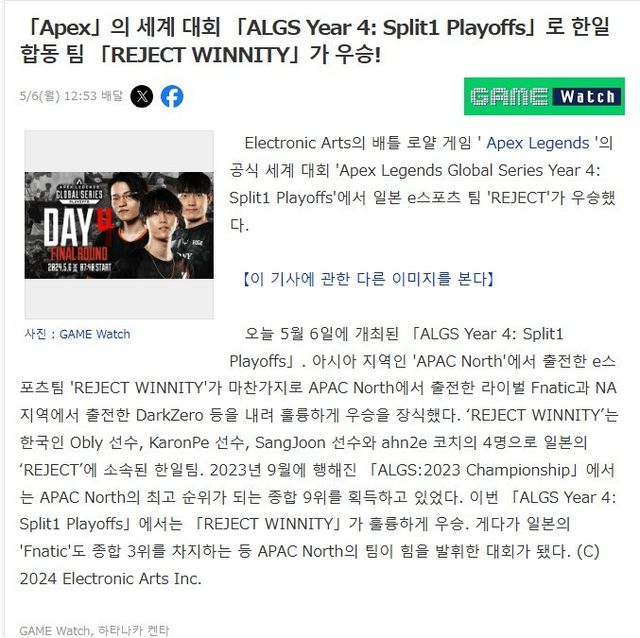 한국팀 리젝트 (RC)가 3키마로 우승함