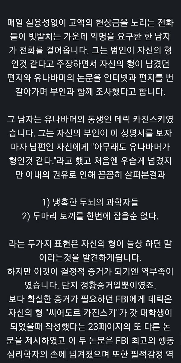 시어도어 카진스키 (Theodore Kaczynski) a.k.a 유나 바머