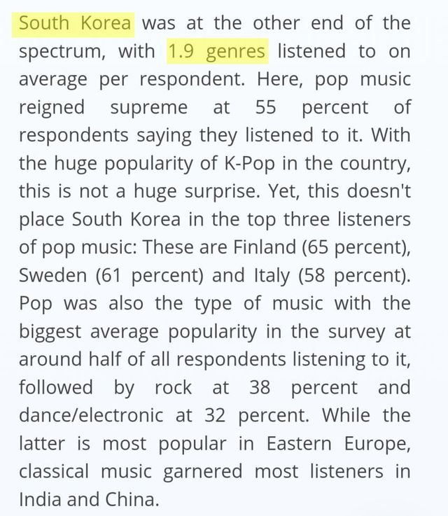 3. 한국은 1.9개의 장르로 설문에 참여한 21개 국가 중 가장 적은 수의 장르를 즐김