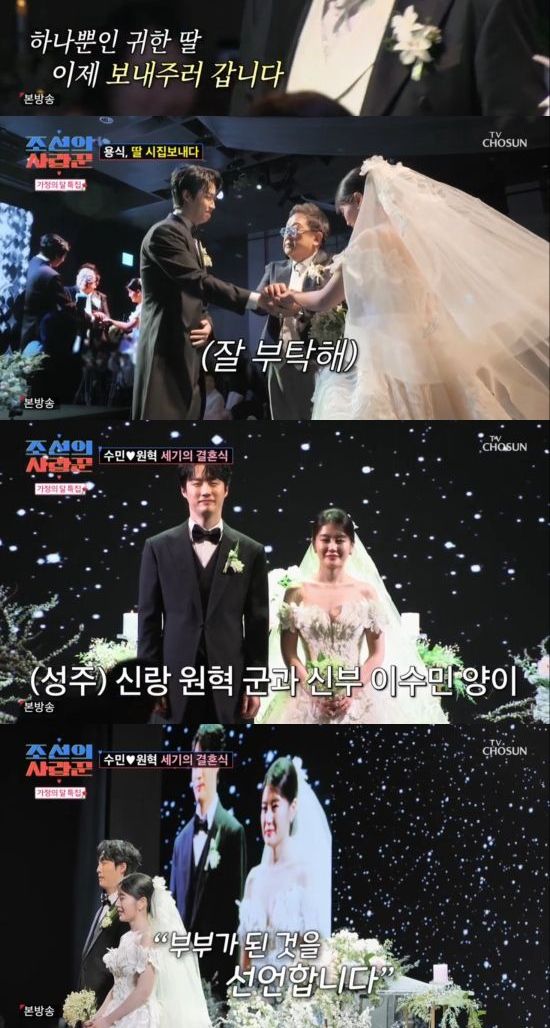 김성주는 "든든한 신랑이 기다리고 있다"라며 밝혔고, 이용식은 원혁과 포옹을 나눈 뒤 이수민의 손을 원혁에게 넘겨줬다.
