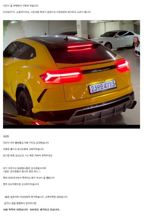 몇주전 우루스 도난당했다고 사례 500 준다고 글 올렸던 사람이 찾았다고 글 올림