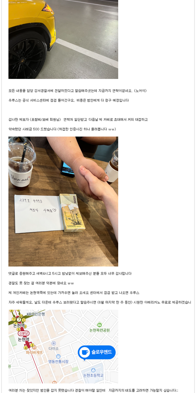 몇주전 우루스 도난당했다고 사례 500 준다고 글 올렸던 사람이 찾았다고 글 올림