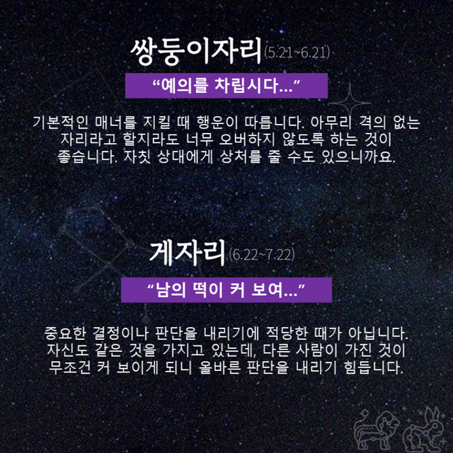Δ 쌍둥이자리 : 예의를 차립시다…