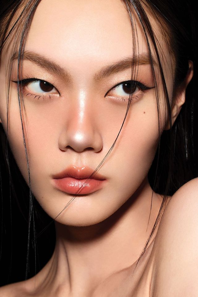 하이라이터를 여러 번 레이어링하는 것이 포인트다. 파운데이션을 바르기 전 펄이 든 메이크업 베이스를 얼굴 전체에 입히거나 파운데이션과 5:5 비율로 섞어 빛나는 피부를 만든다. 그런 다음 여러 번 쌓기 좋은 파우더 타입으로 이마, 볼 등 넓은 부위에 반짝임을 더하고 광대뼈와 눈썹뼈에 두세 번 덧바른다. 얼굴 전체에 광을 연출했기 때문에 양 볼에 핑크빛 하이라이터로 혈색을 더해야 넙데데해 보이지 않는다. 광이 돋보이도록 아이 메이크업은 최소화하고 입술에는 반짝이는 글로스를 발라 마무리한다.