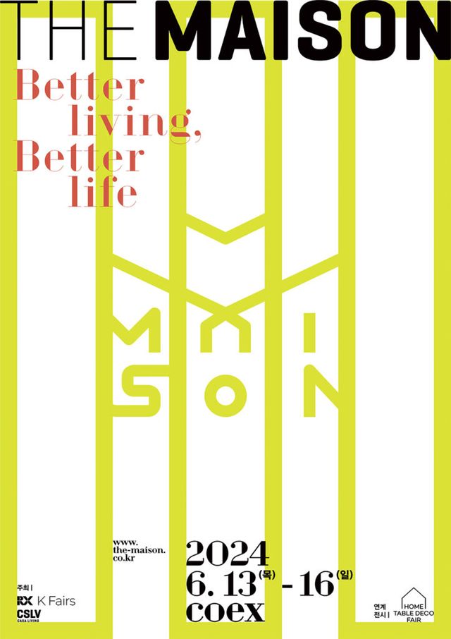 한편 더 메종은 세계 3대 인테리어 전시로 꼽히는 프랑스 파리 메종오브제(Maison&Objet)를 주최하는 글로벌 전시 주최사 RX와 국내 대표 전시 주최사 케이훼어스의 합작회사 RX케이훼어스가 주최합니다. 폭넓은 볼거리와 풍부한 콘텐츠로 인테리어에 관심이 있는 분들뿐만 아니라 모두에게 즐거운 경험이 될 거예요.