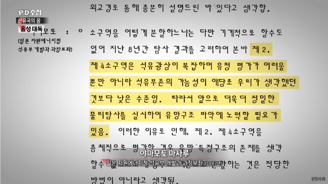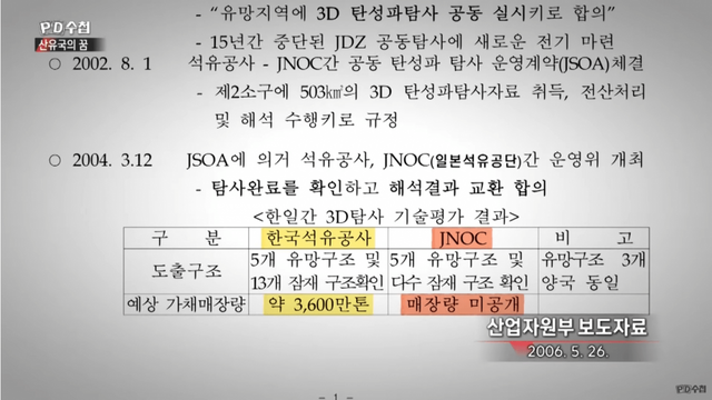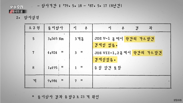 그리고 당시 정부부처에서 대해 발간한 보고서에도 약간의 가스가 발견되긴 했지만 경제성이 없다고 함.