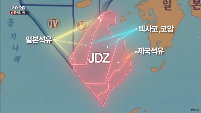한국과 일본은 협약에 따라 제7광구(JDZ)를 세부적으로 9부분으로 나눈 뒤 해외 석유 기업과 일본 석유기업에게 시추할 수 있는 권리를 줌.