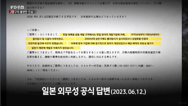 PD수첩은 이에 당시 상황에 대해서 일본 외무성에 질의를 보냈고, 외무성은 여전히 채산성 없어서 안했다는 답만 하는 중.