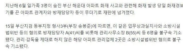 지난해 1월~7월 사이 화재 경보기가 자주 울려 민원이 발생한다는 이유로 202회에 걸쳐 화재 경보기를 꺼놓은 것으로 드러남…