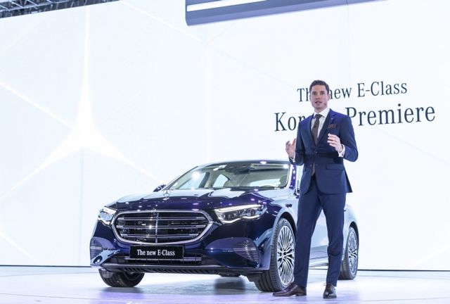 올리버 퇴네 메르세데스-벤츠 AG 제품 전략 및 운영 총괄 부사장이 지난 1월 19일 오전 서울 코엑스에서 열린 '더 뉴 메르세데스-벤츠 E-클래스 코리안 프리미어' 행사에서 신형 E클래스를 소개하고 있다. 사진=메르세데스-벤츠코리아 제공