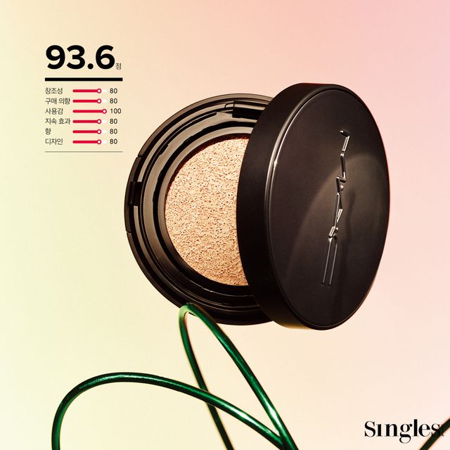 맥 스튜디오 픽스 롱웨어 쿠션 파운데이션 피부에 얇게 밀착된 제형이 피붓결을 깔끔하게 정돈하고 오래도록 다크닝 없이 유지시킨다. 붉은 기는 물론, 잡티까지 말끔하게 가릴 정도로 커버력이 높다. 13g 7만3000원.