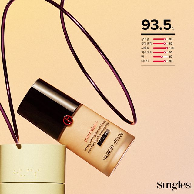 아르마니 뷰티 파워 패브릭+울트라 롱웨어 웨이트리스 매트 파운데이션 아무것도 바르지 않은 것처럼 가볍지만 모공과 요철을 매끈하게 커버한다. 모공이나 주름 사이에 끼임 없이 보송하고 보드라운 피붓결을 연출한다. 30ml 8만9000원.