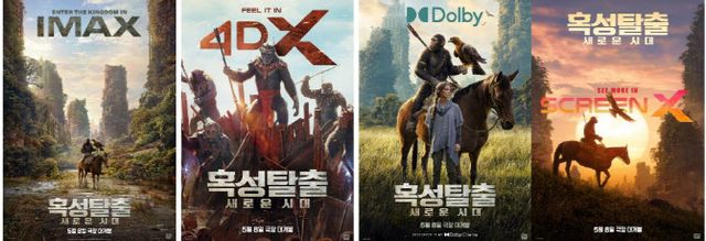 5월 극장가의 새로운 기대작으로 주목받으며 본격 예매 오픈을 알린 ‘혹성탈출: 새로운 시대’가 다양한 포맷으로 개봉하며 전 세대 관객들을 사로잡을 예정이다. 이에 영화를 200% 즐길 수 있는 특수관 포맷도 극장에서 만나볼 수 있는 가운데 IMAX부터 4DX, DOLBY CINEMA(돌비 시네마), ScreenX까지 포맷별 포스터도 공개돼 이목을 집중시킨다.