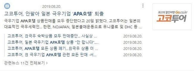 국내여행사들 대부분 APA호텔과 일찍 손절했고