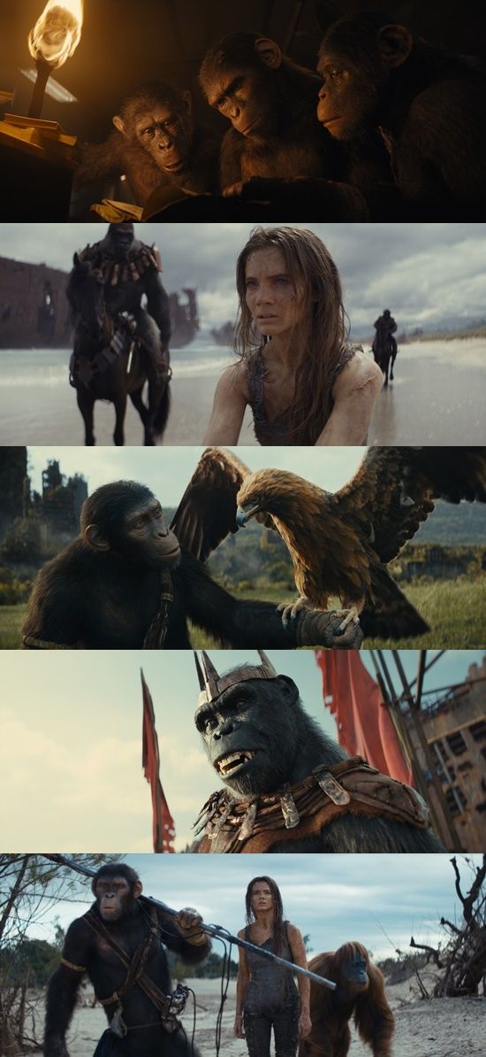 '혹성탈출: 새로운 시대'는 진화한 유인원과 퇴화된 인간들이 살아가는 오아시스에서 인간들을 지배하려는 유인원 리더 프록시무스 군단에 맞서 한 인간 소녀와 함께 자유를 찾으러 떠나는 유인원 노아의 여정을 그린 영화다.