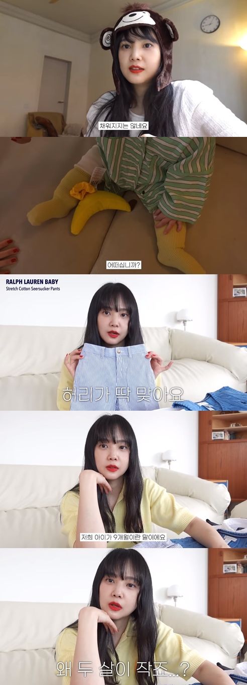 윤승아는 "저희 아이가 9개월이고, 곧 10개월인데 왜 두 살 옷이 작냐. 이 브랜드가 원래 작게 나오냐"라고 한탄해 웃음을 자아냈다.