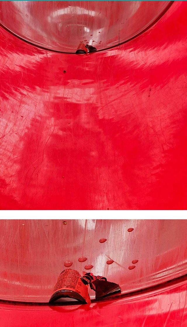 동네 미끄럼틀 한가운데에 박카스 깨서