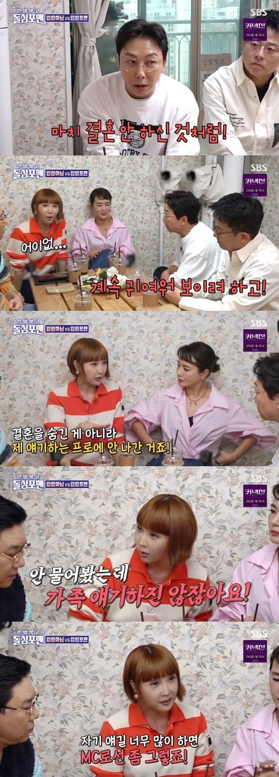 탁재훈은 최은경에게 "결혼 사실을 숨기고 있다. 마치 방송에서는 혼자 사는 것처럼 귀엽게 보이지 않냐"고 추궁했다.