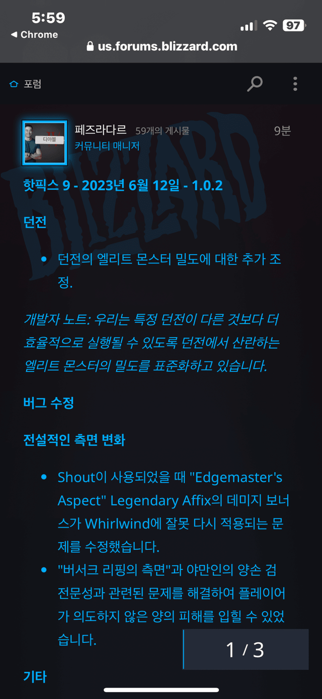 여기선 버그때문에 너프라고 하는데 정작 디아4 커뮤니티에선 서버 부하때문에 너프했다고 생각하는 사람이 대다수인데다가