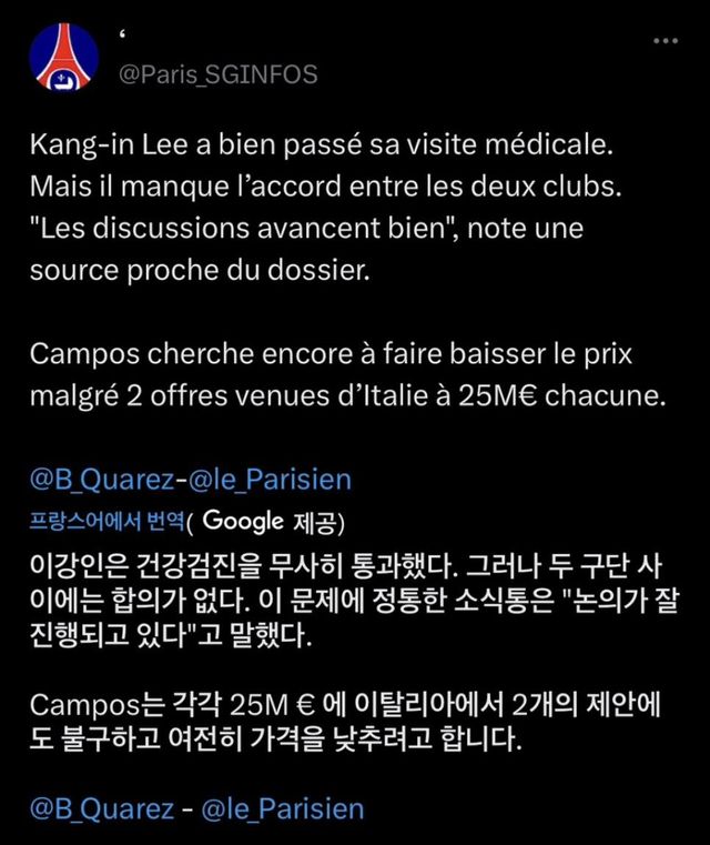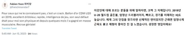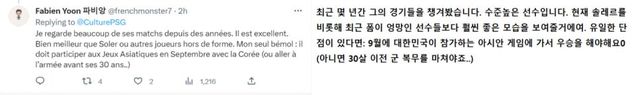 파비앙이 현지 파리팬들 커뮤니티에서 열심히 강인이 좋은 선수라고 으쌰으쌰 해주고 있네요 ㅋㅋㅋ