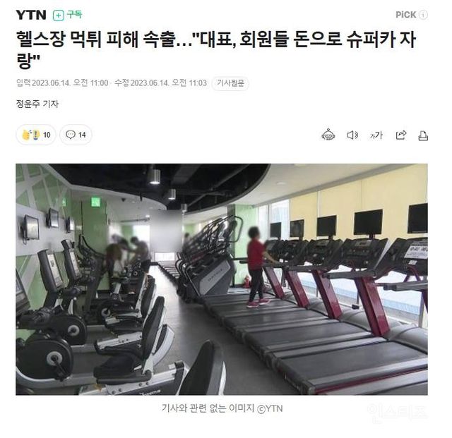 출처 : 헬스장 먹튀 피해 속출…”대표, 회원들 돈으로 슈퍼카 자랑” (naver.com)
