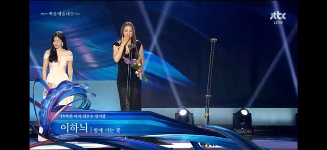 이하늬는 밝게 웃으며 무대로 올라왔지만 “감사하다”며 애써 눈물을 참는 모습을 보였다. 이어 “수상식에 와서 헛물켜는 경우가 많아서 아무 생각 없이 앉아있다가”라고 말끝을 흐렸다.