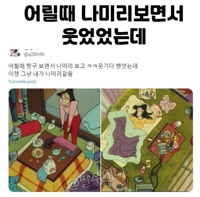 어릴땐 집도 안치우고 주말에 드러누워만 있고 진짜 한심하다 비웃었는데 자기들 모습이 저렇다고 ...